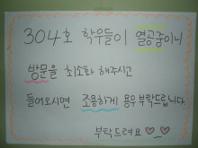 さて、一生懸命勉強してる皆は一部ですがそれぞれの部屋の扉に紙を貼ってます。